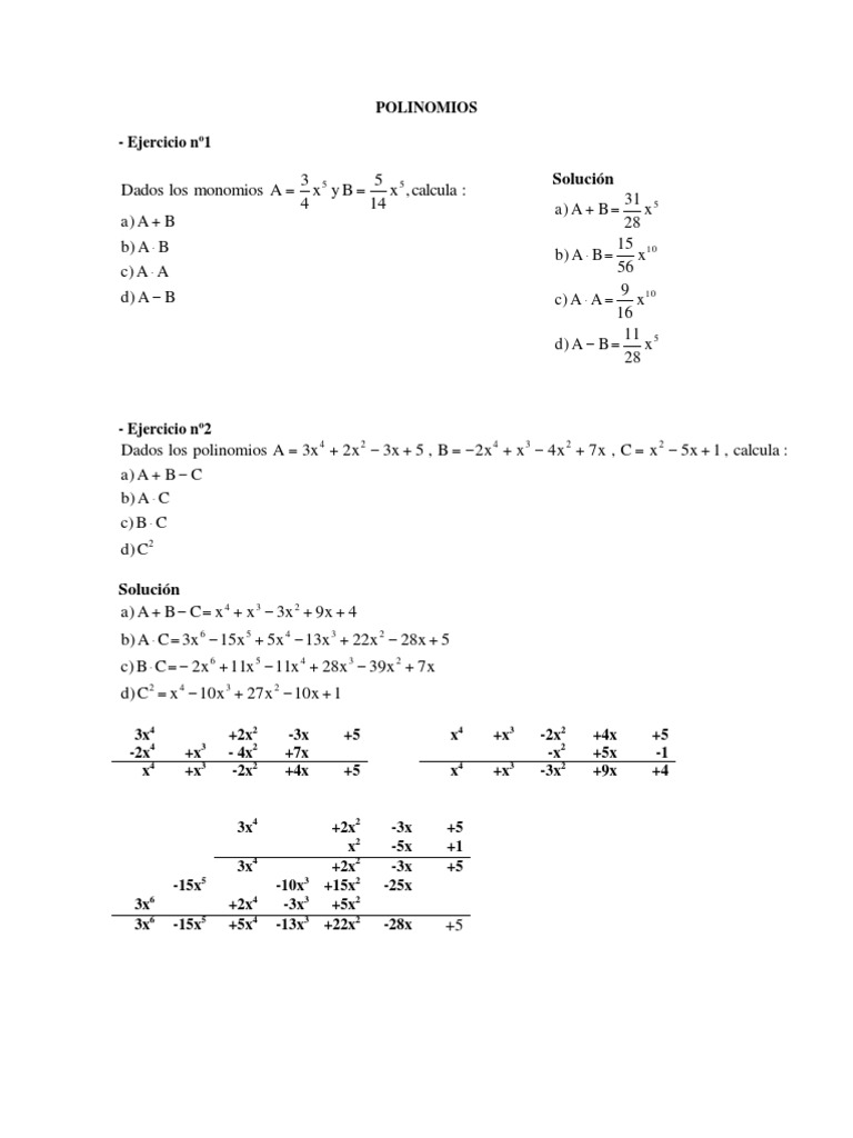 Ejercicios resueltos de repaso de polinomios - Didactalia ... from content.gnoss.ws Ejercicios resueltos de polinomios , operaciones , suma resta , división , multiplicación , fracciones algebraicas , identidades notables , binomios al cuadrado , regla de ruffinni , factorización , tutorial de. De polinomios, empezamos por el nivel y dos problemas de polinomios que vamos juntos a resolver. Conheça suas principais características, operações e a fatoração de polinômios. Ejercicios de polinomios 4º eso opc. Un polinomio es una expresin algebraica de la forma: Ejercicios resueltos de polinomios, operaciones con polinomios, división por ruffini, factorizar polinomios, cursos, eso en los enlaces siguientes tienes ejercicios resueltos de polinomios. En los siguientes ejercicios, determine. Saiba o que são os polinômios.